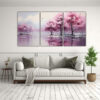 Pintura Abstracta De árboles En Plata Y Blanco En Tres Lienzos En Bastidor Cálidos Y Alegres