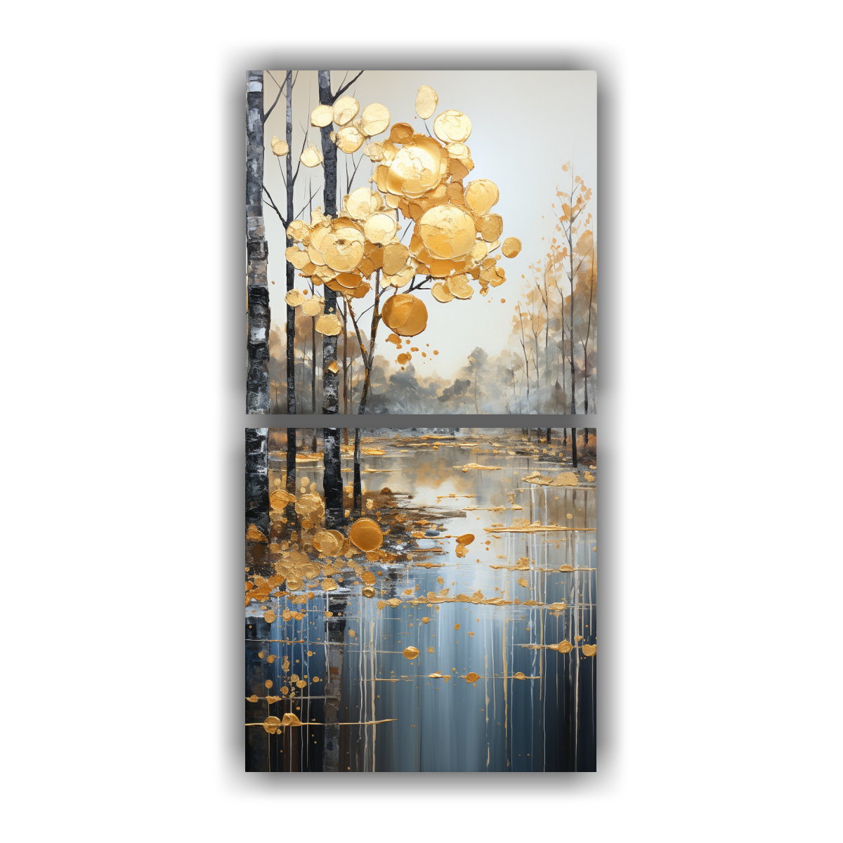 Pintura Abstracta De árboles En Plata Y Blanco, Impactante Arte Creativo De 2 Fine Arts