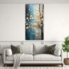 Coloca este cuadro en la pared principal de tu dormitorio para crear un punto focal impactante Combínalo con muebles blancos o plateados para realzar su belleza Además, puedes añadir cojines y cortinas en tonos gris y turquesa para lograr una paleta de colores equilibrada y sofisticada