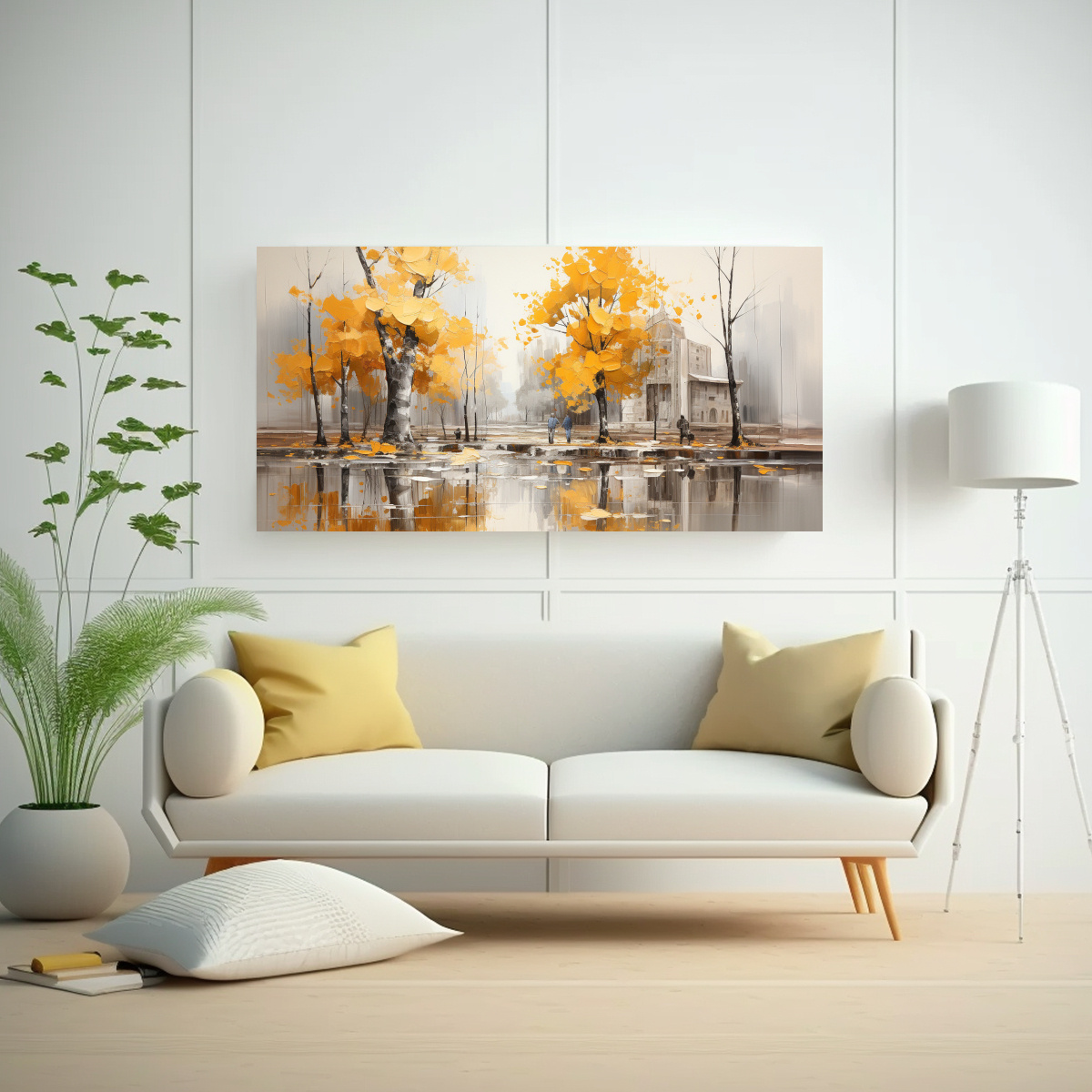 Este cuadro de árboles en plata y blanco sería perfecto para decorar tu sala de estar Puedes colocarlo en una pared blanca para resaltar los colores y crear un ambiente moderno y elegante Combínalo con muebles en tonos neutros como gris claro o beige, y añade algunos cojines en tonos plateados y dorados para complementar la paleta de colores ¡Crea un espacio acogedor y sofisticado con este hermoso cuadro!