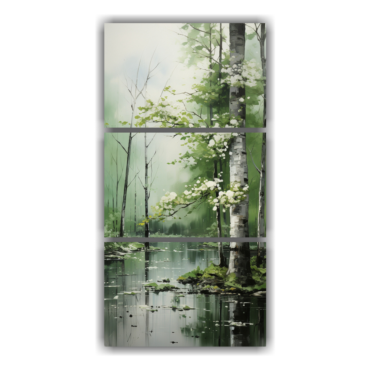 Pintura Abstracta De árboles En Plata Y Blanco: Tres Telas Inspiradoras.
