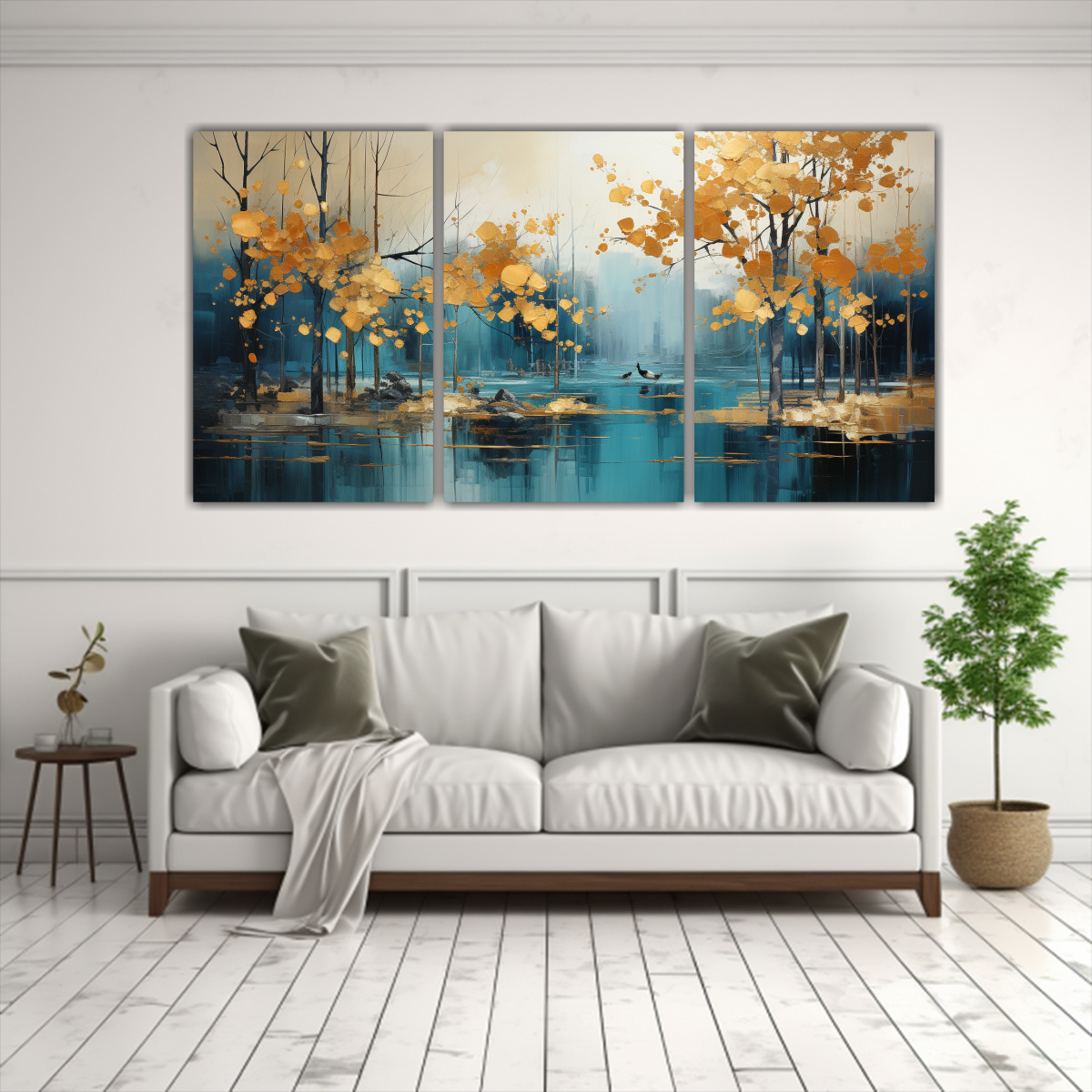 Este cuadro abstracto de árboles en plata y oro sería perfecto para decorar tu sala de estar Puedes colocarlo sobre un sofá de color neutro para crear un contraste llamativo o en una pared de acento para darle protagonismo También puedes combinarlo con cojines en tonos plata y dorado para una mayor armonía en la decoración