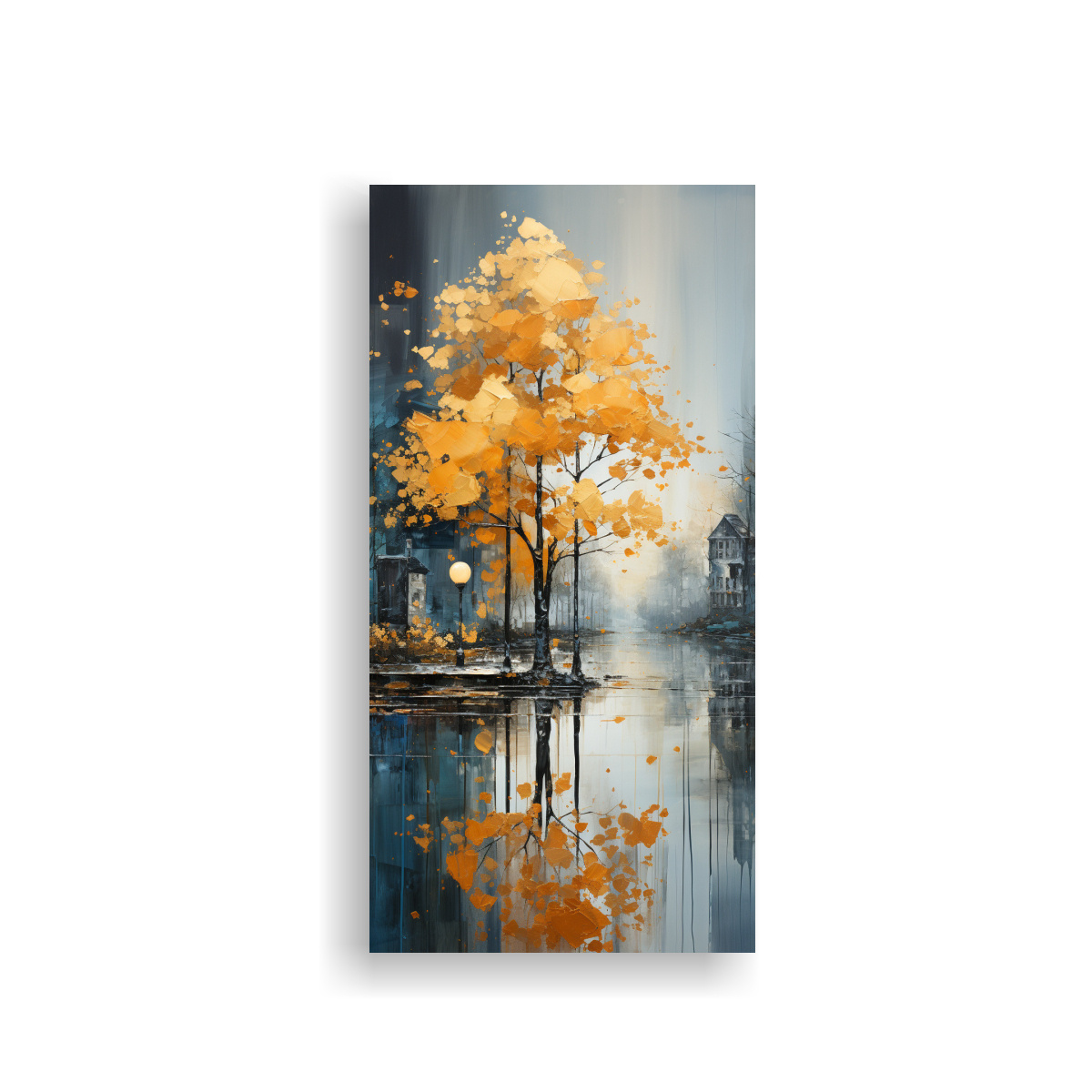 Pintura Abstracta De árboles En Plata Y Oro Con Equilibrio Vertical