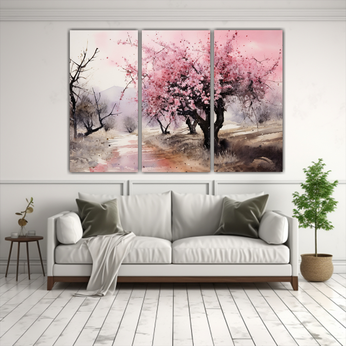 Este cuadro abstracto de Árboles Frutales en colores negro y rosa se vería perfecto en la sala de estar sobre un sofá gris claro, creando un contraste elegante y moderno Combínalo con cojines en tonos rosados y grises para una decoración armoniosa