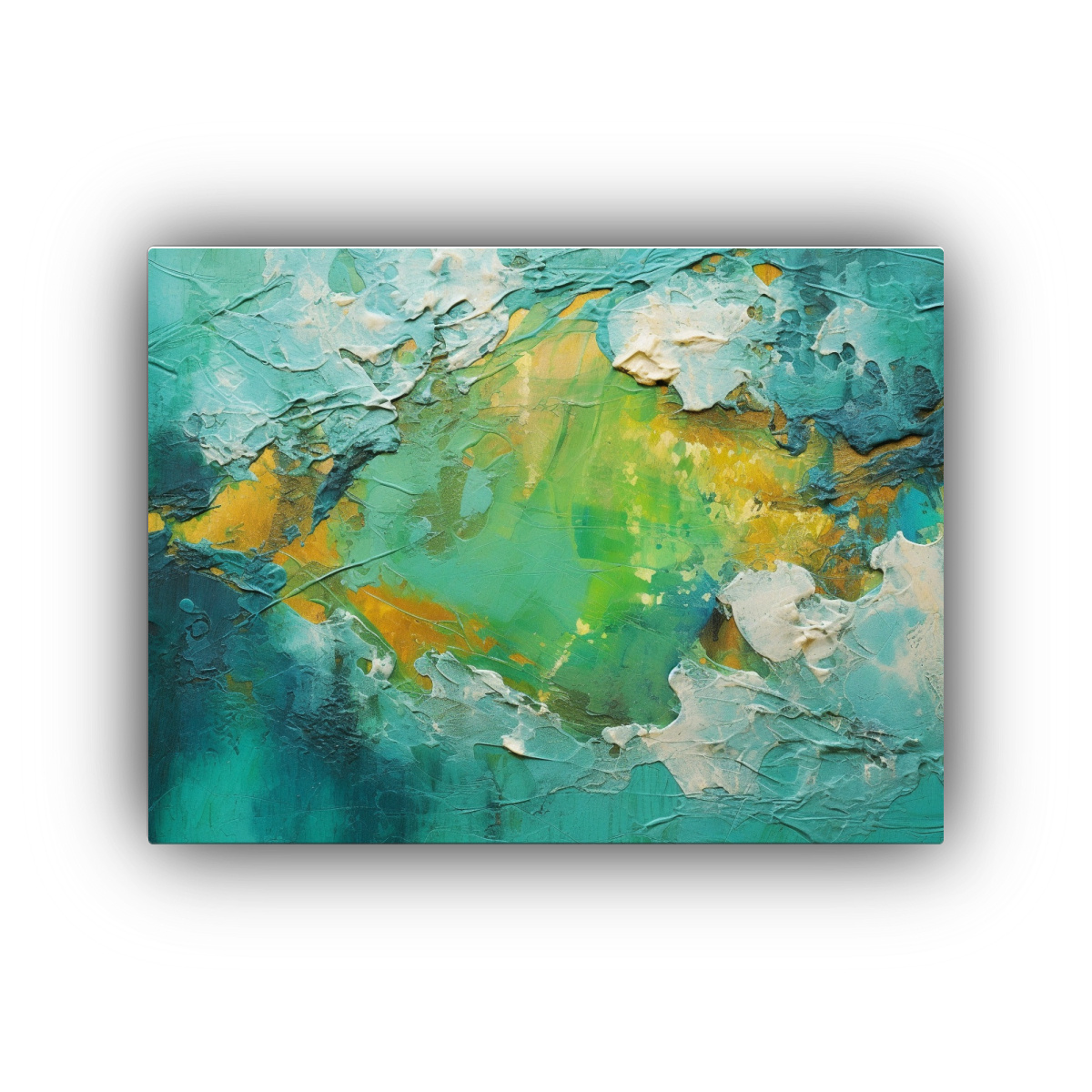 Este cuadro abstracto en tonos terrosos y verdes es ideal para decorar tu salón o sala de estar Colócalo sobre un sofá de color neutro para resaltar su belleza y crear un ambiente acogedor Combínalo con cojines en tonos verde azulado y mostaza para un estilo armonioso y moderno