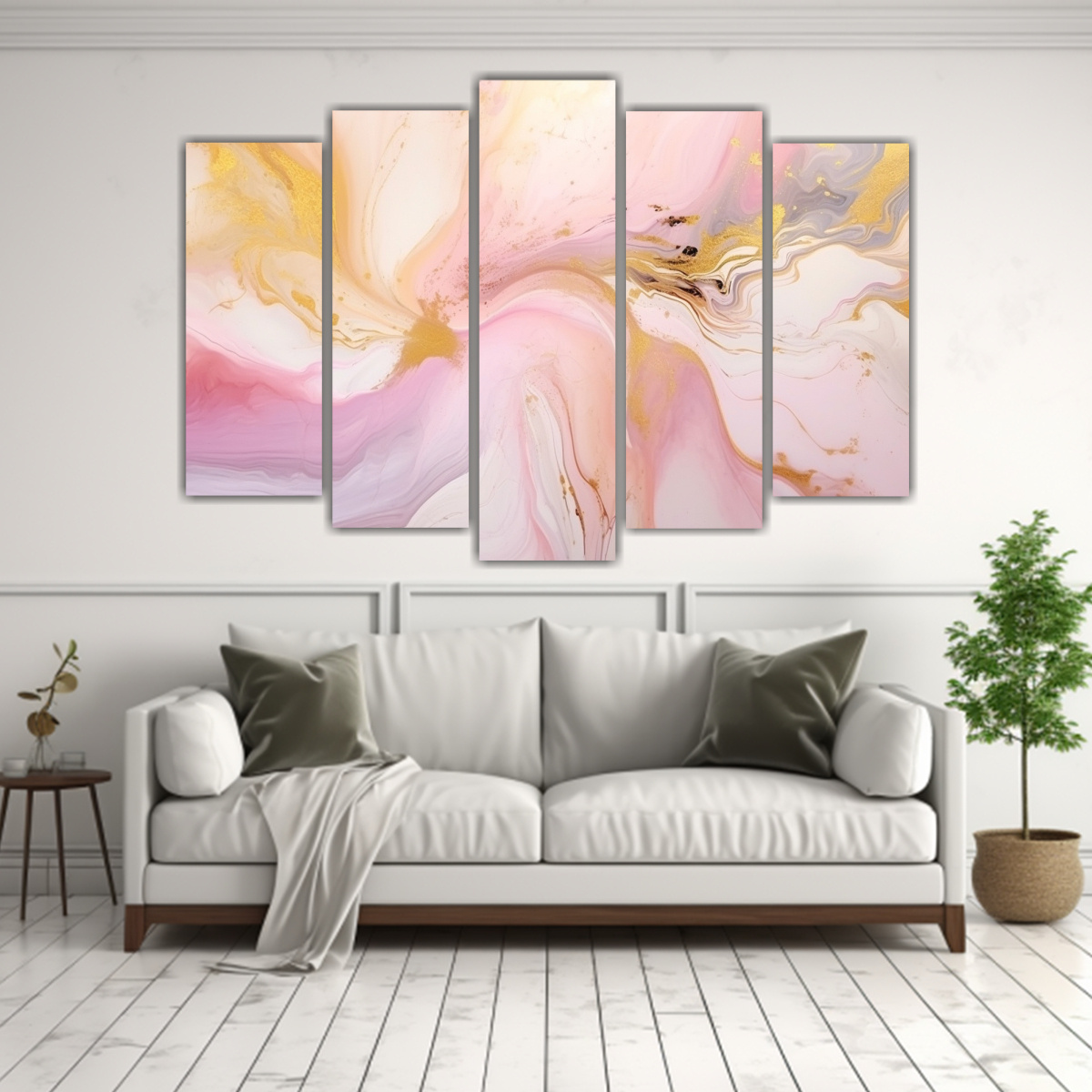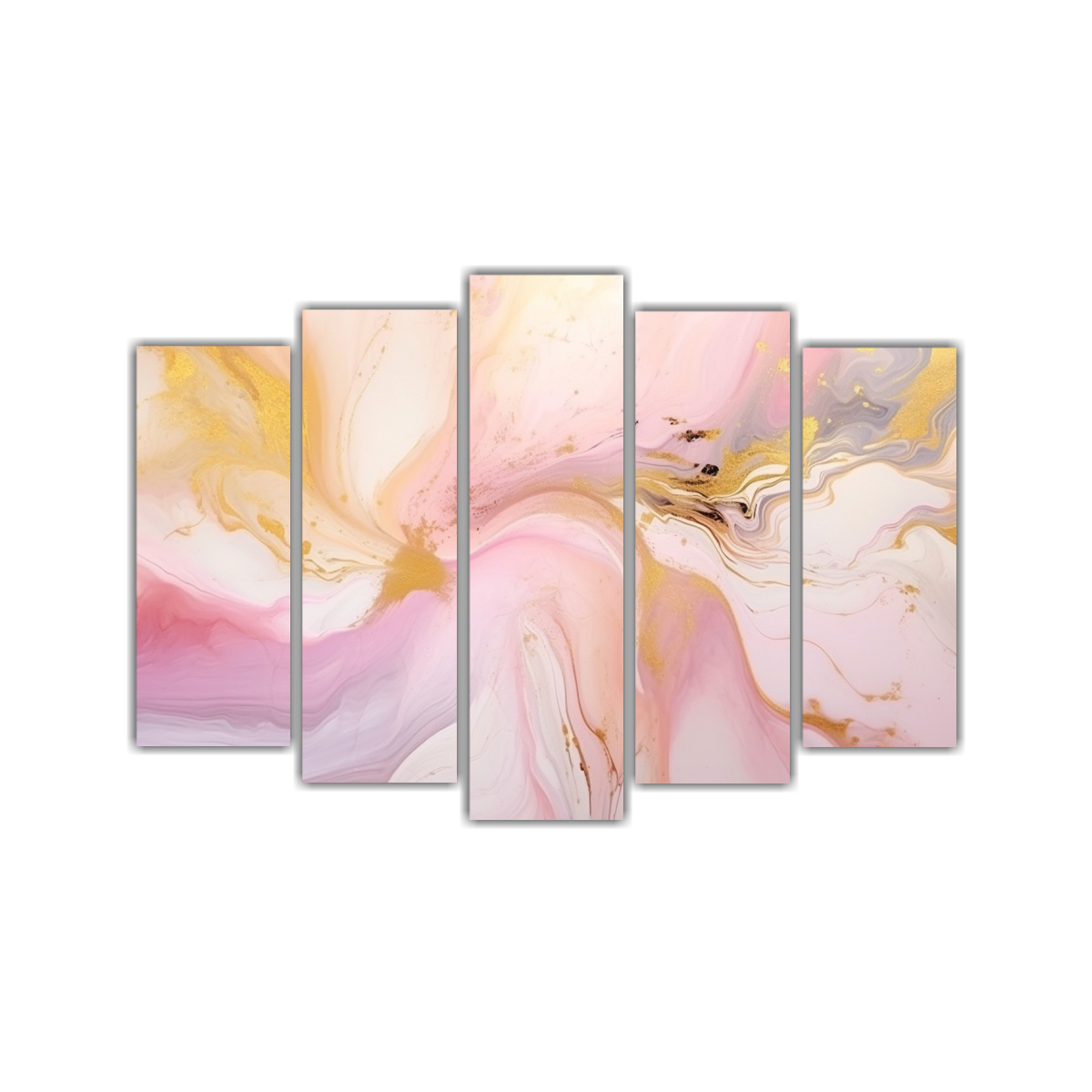 Pintura Abstracta De Arte Fluido Natural En Alcohol Con Bastidor De Cinco Telas