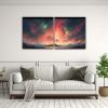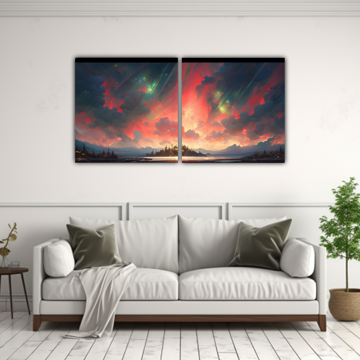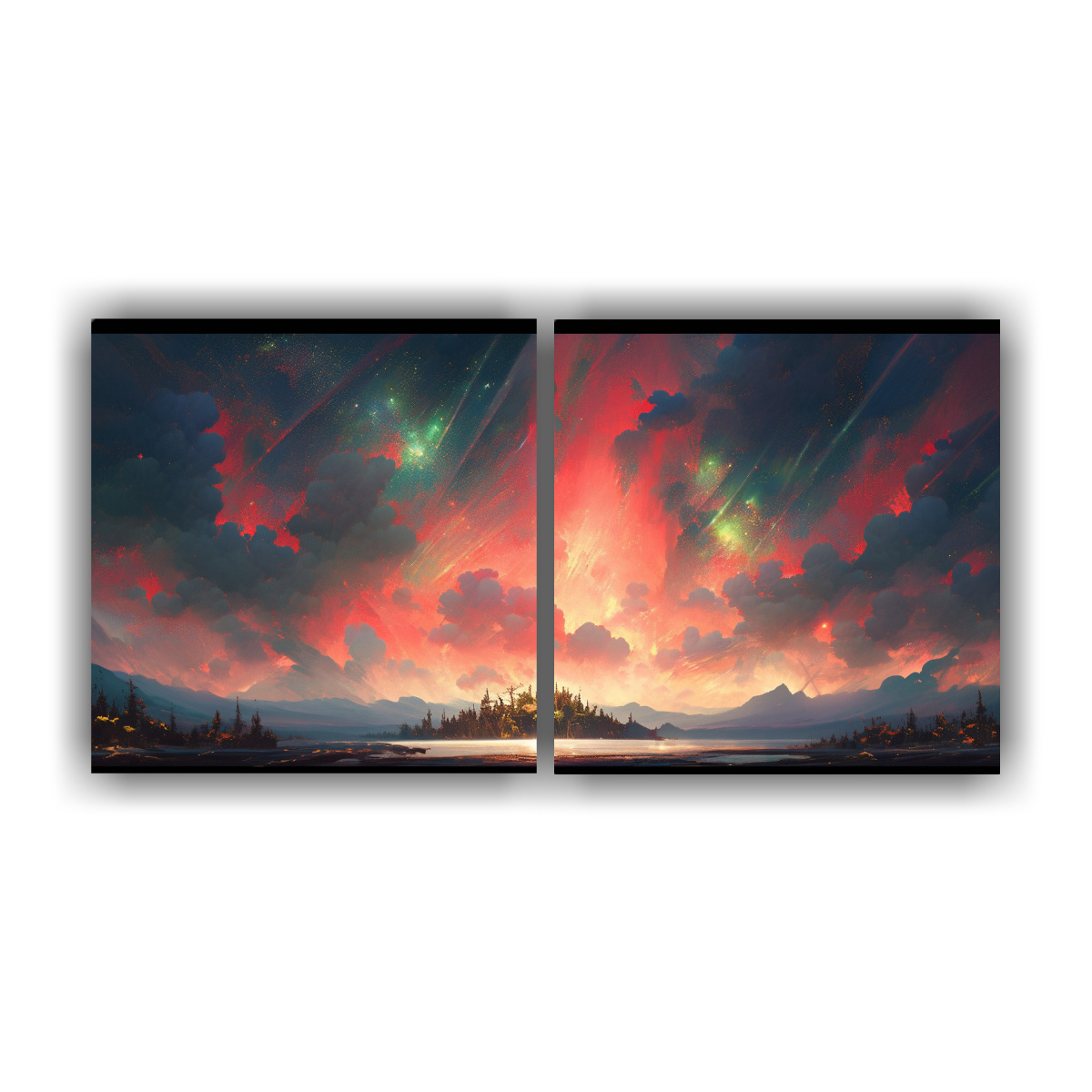 Pintura Abstracta De Aurora Boreal Con Colores Rojos: Arte De Pared.