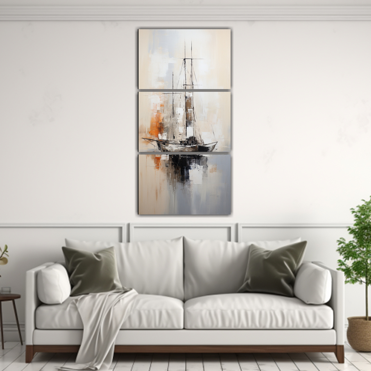 Pintura Abstracta De Barco En Blanco Y Negro Para Decoración Moderna