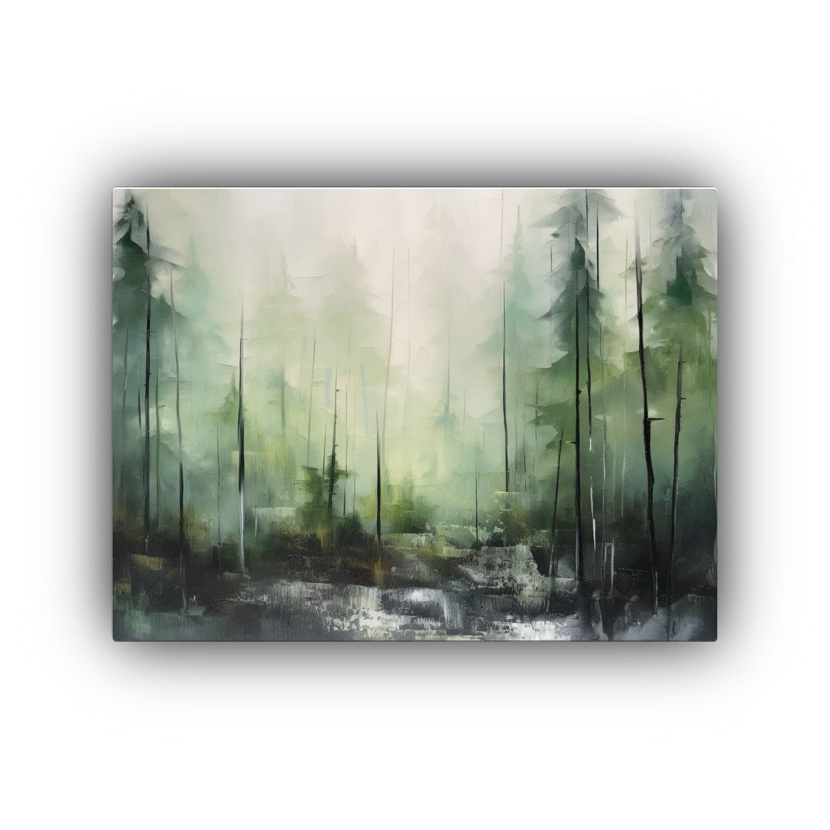 Pintura Abstracta De Bosque Brumoso En óleo Para Decoración.