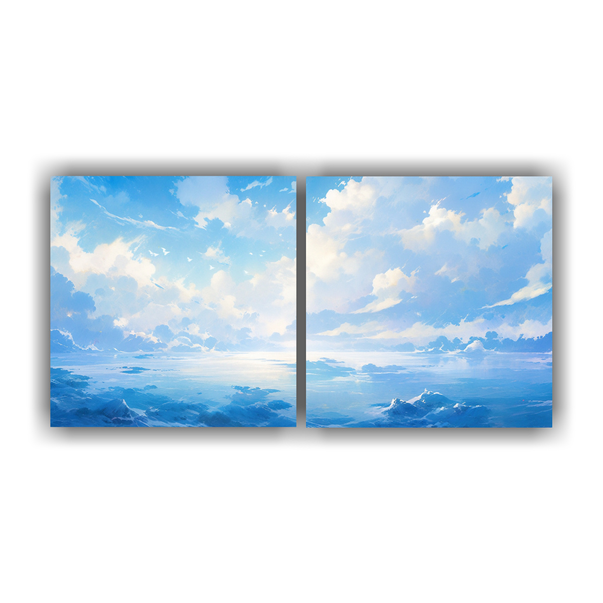 Pintura Abstracta De Cielo Y Mar En Tonos Azules