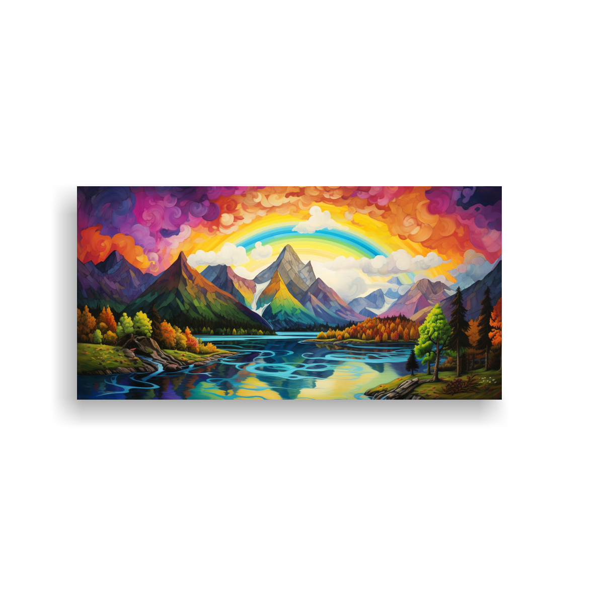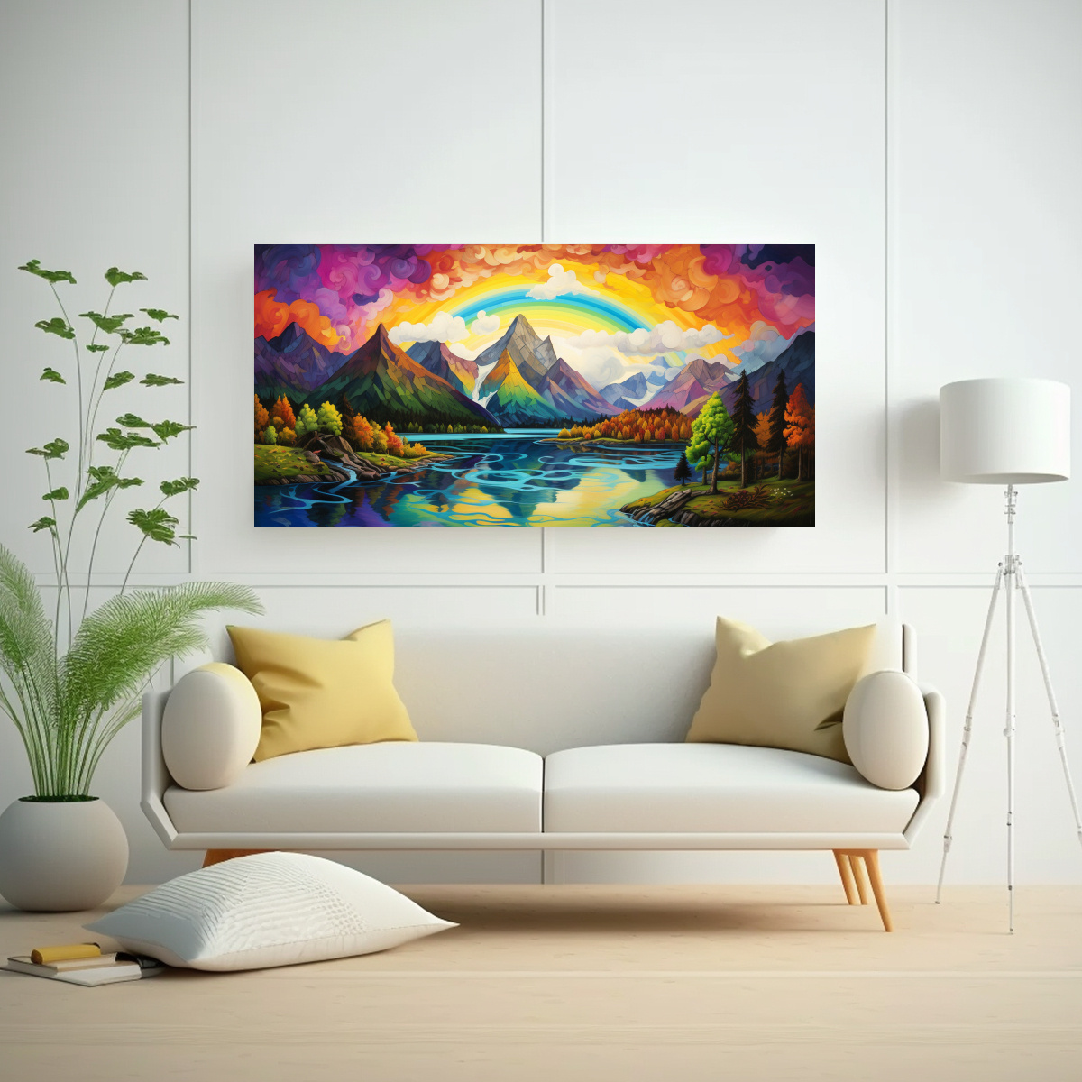 Este cuadro abstracto de colores arcoíris en lienzo horizontal se vería espectacular en la sala de estar sobre un sofá blanco, creando un contraste elegante y moderno ¡Atrévete a destacar tu estilo con esta pieza única!