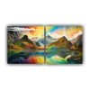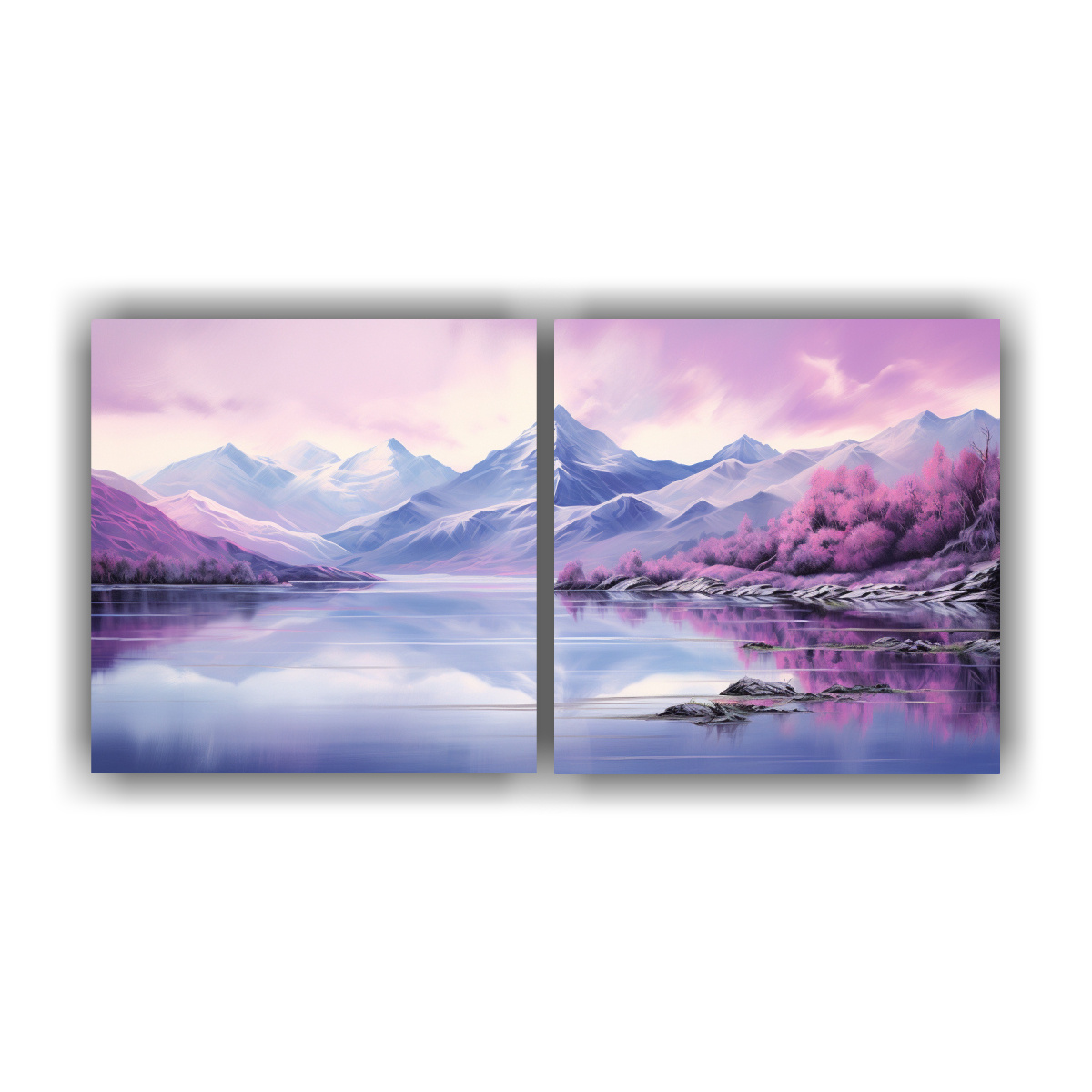 Pintura Abstracta De Colores Morados En Paisaje Lacustre Montañoso