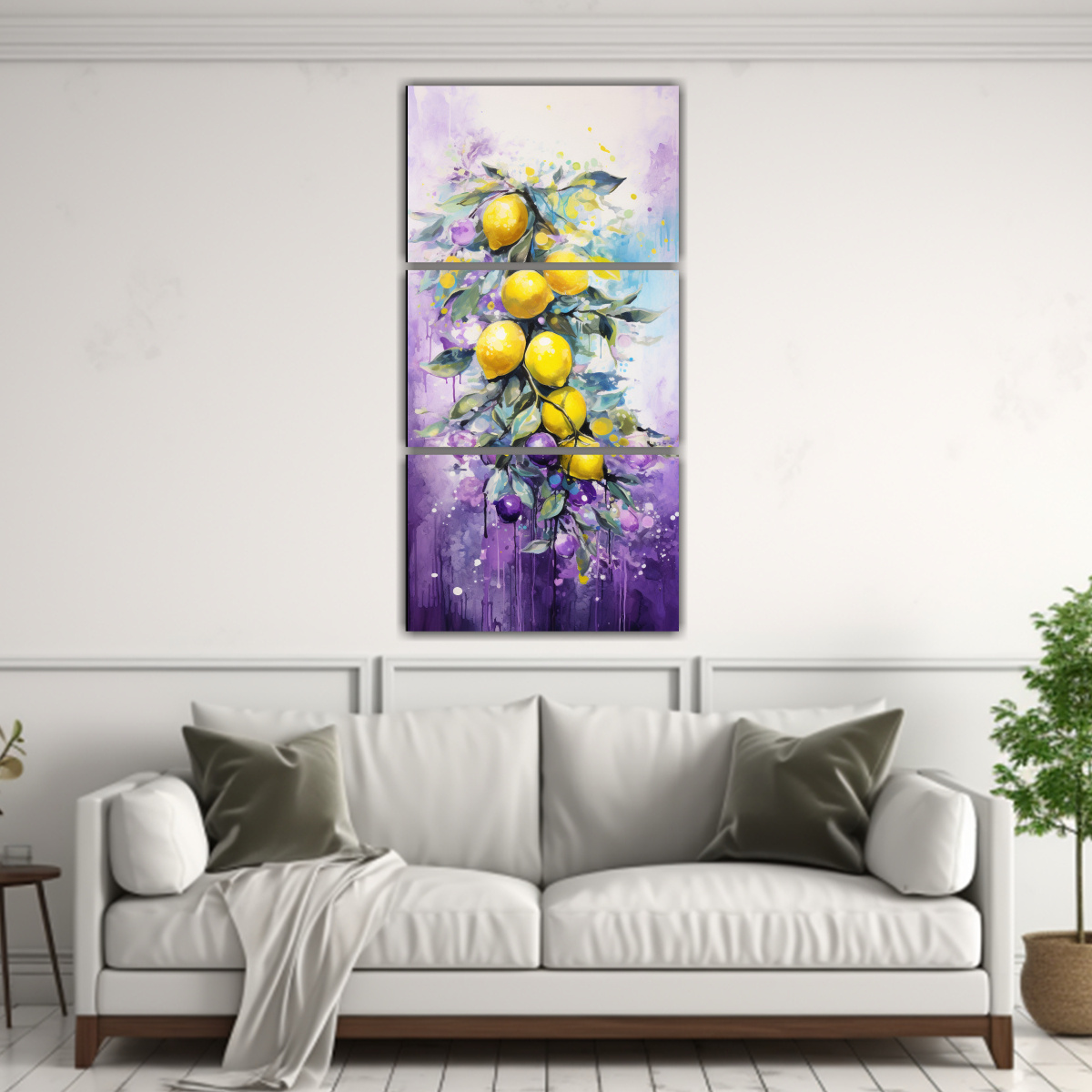 Este cuadro abstracto de colores morados y limón en acuarela es perfecto para añadir un toque de frescura y modernidad a tu sala de estar o estudio Colócalo sobre un mueble blanco para resaltar sus tonos y crear un ambiente vibrante y acogedor