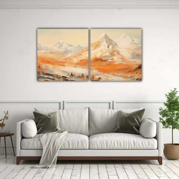 DecoCuadros te ofrece la mejor calidad del mercado y precios más económicos El cuadro abstracto en tonos naranjas sobre montañas nevadas le dará un toque moderno y vibrante a tu sala de estar o dormitorio Asegúrate de colocarlo en un lugar bien iluminado para resaltar sus colores y crear un ambiente acogedor