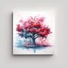 Pintura Abstracta De Colores Rojo Y Azul De Un Cerezo.