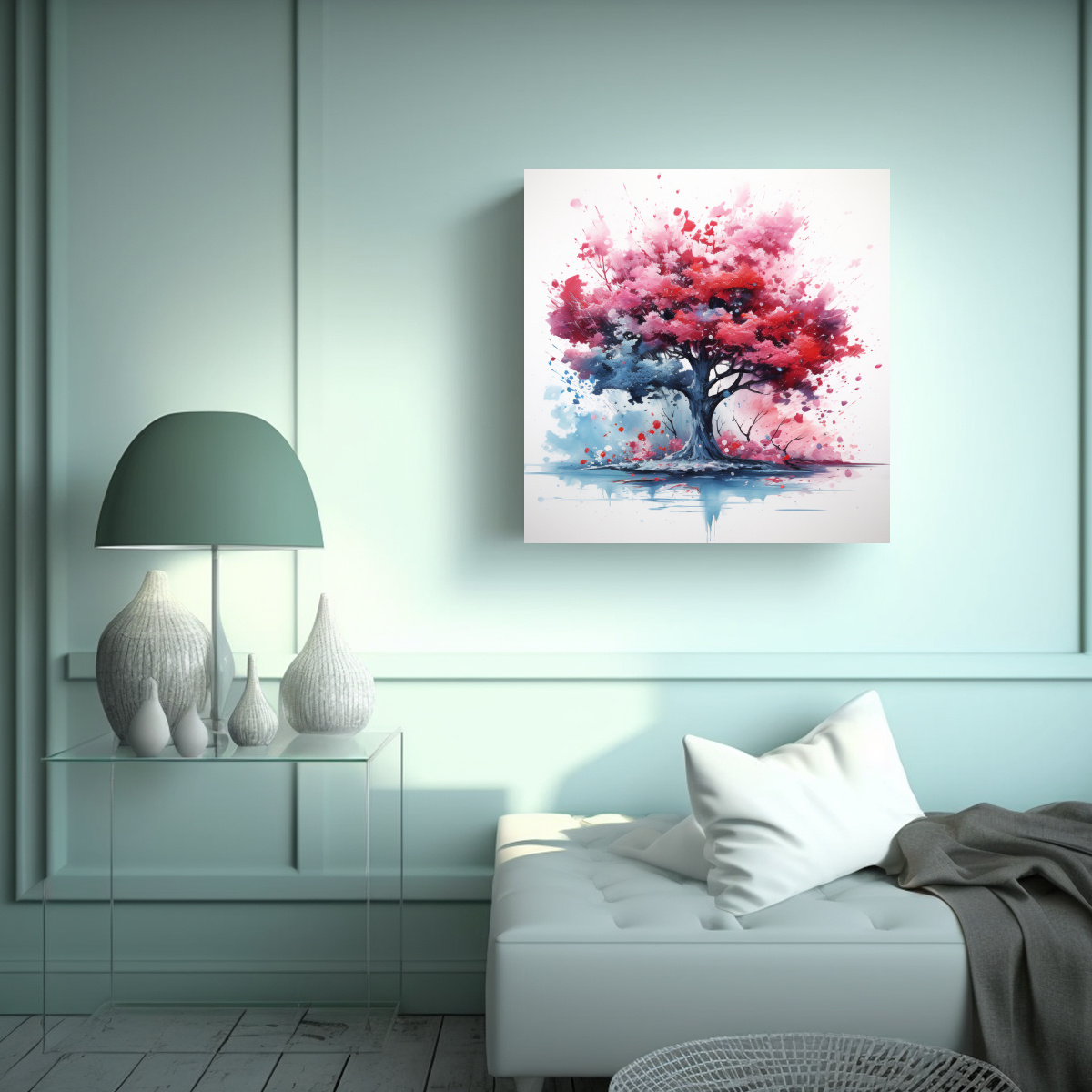 Este cuadro abstracto de colores rojo y azul de un cerezo es perfecto para decorar tu sala de estar o tu dormitorio Su diseño único y llamativo será el centro de atención en cualquier espacio Te recomendamos colocarlo encima de un sofá o una cama para crear un punto focal impactante Combina este cuadro con muebles y accesorios en tonos neutros como beige o gris para resaltar su belleza También puedes añadir cojines en tonos complementarios como turquesa o coral para lograr una armonía cromática en tu decoración ¡Transforma tu hogar con este hermoso cuadro abstracto!