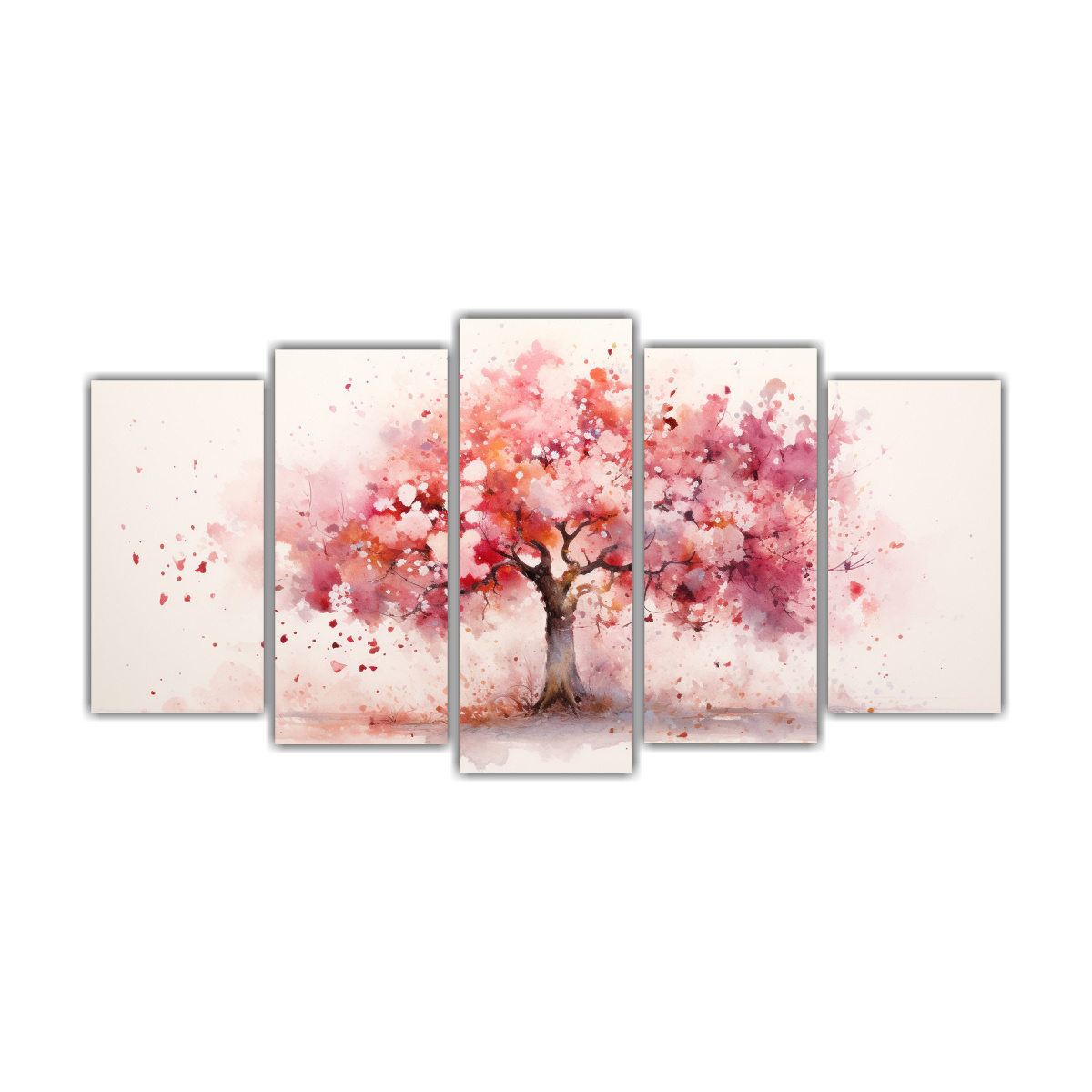Pintura Abstracta De Colores Rojo Y Rosa Inspirada En La Formación De Un Manzano.