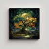 Pintura Abstracta De Colores Verde Y Naranja, Arte De Pared De Un Roble Verde Y Naranja