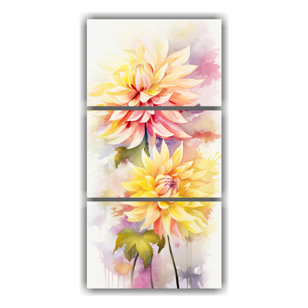 Pintura Abstracta De Dalias Amarillas Y Rosas Para Decoración.