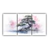 Pintura Abstracta De Decoración De Un árbol De Bonsái Amarillo Y Rojo Con Líneas Finas En Lienzo