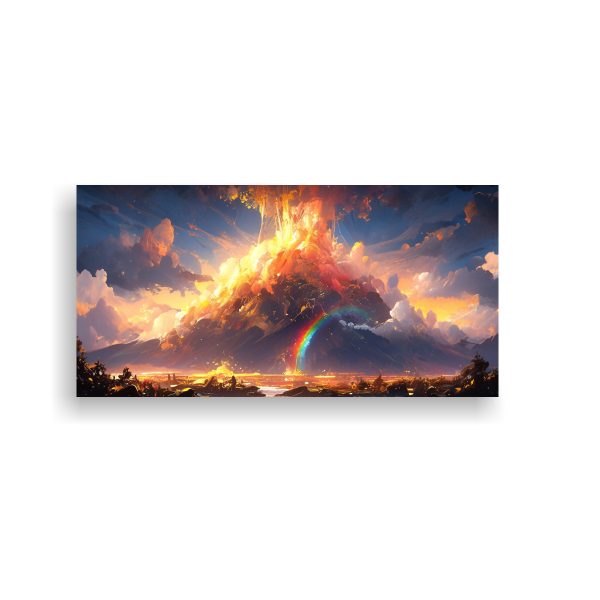 Añade un toque único a tu sala de estar, dormitorio o sala de estudio con este cuadro abstracto de temática volcán Combina los colores vibrantes como el arcoíris y el amarillo para crear un ambiente moderno y lleno de energía Colócalo en una pared de tonos neutros para que resalte y sea el centro de atención