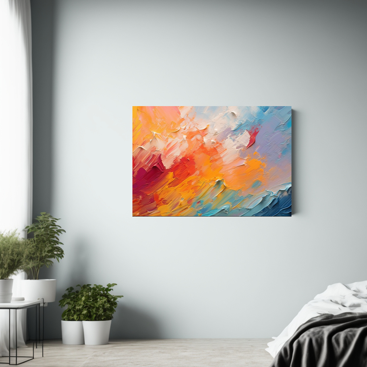 Este cuadro abstracto de estrés quedaría perfecto en un ambiente minimalista y moderno, como la sala de estar o el estudio Combínalo con muebles de líneas simples y colores neutros para resaltar su impacto visual y crear un ambiente relajante y a la vez estimulante
