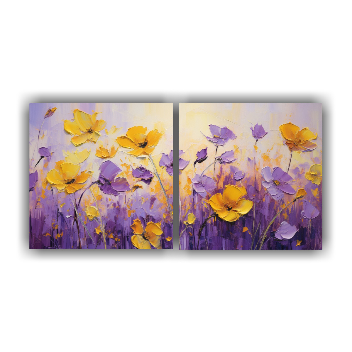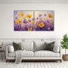 Pintura Abstracta De Flores Amarillas Y Púrpuras En Lienzo Resistente A Dos Pantallas En Bastidor