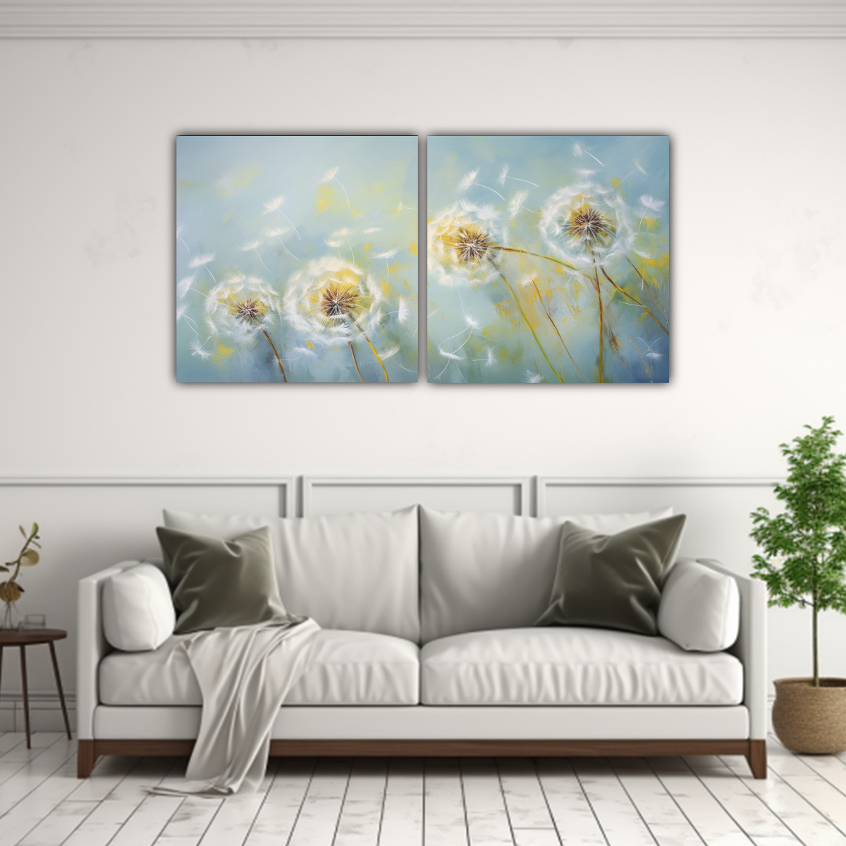 Pintura Abstracta De Flores De Diente De León En Estilo óleo Detallado.