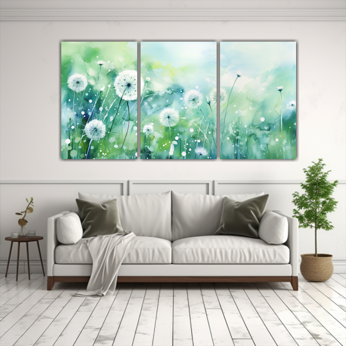 DecoCuadros presenta el elegante cuadro Pintura abstracta de flores de diente de león en verde y blanco con tema simétrico Con colores como menta, beige, turquesa, plateado, azul marino grisáceo y gris, este cuadro es ideal para agregar un toque sofisticado a tu hogar Descubre nuestros diseños exclusivos y aprovecha nuestras entregas rápidas y gratuitas en Santiago