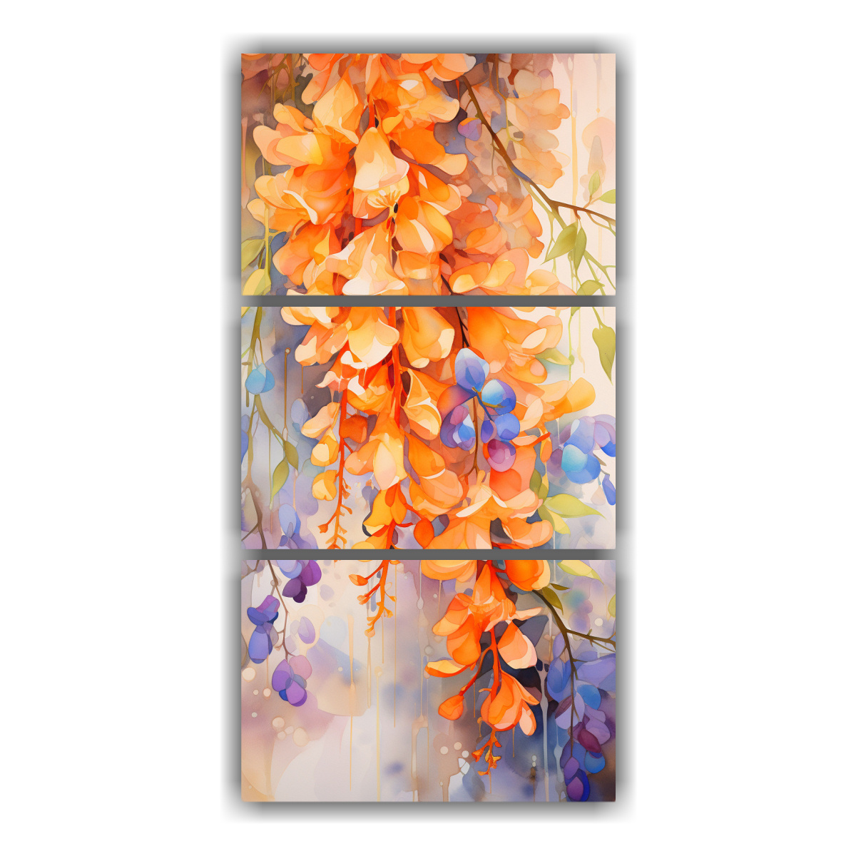 Pintura Abstracta De Flores De Glicina En Tonos Naranja Y Dorado.