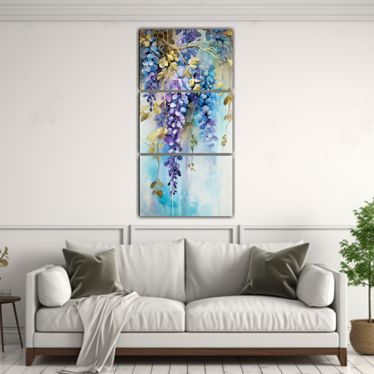 La pintura abstracta de flores de glicinia en tonos turquesa y dorado es perfecta para salas de estar, dormitorios o áreas de relajación Sus colores vibrantes añadirán vida y sofisticación a tu ambiente Colócalo en un muro blanco para resaltar su belleza y crear un punto focal único