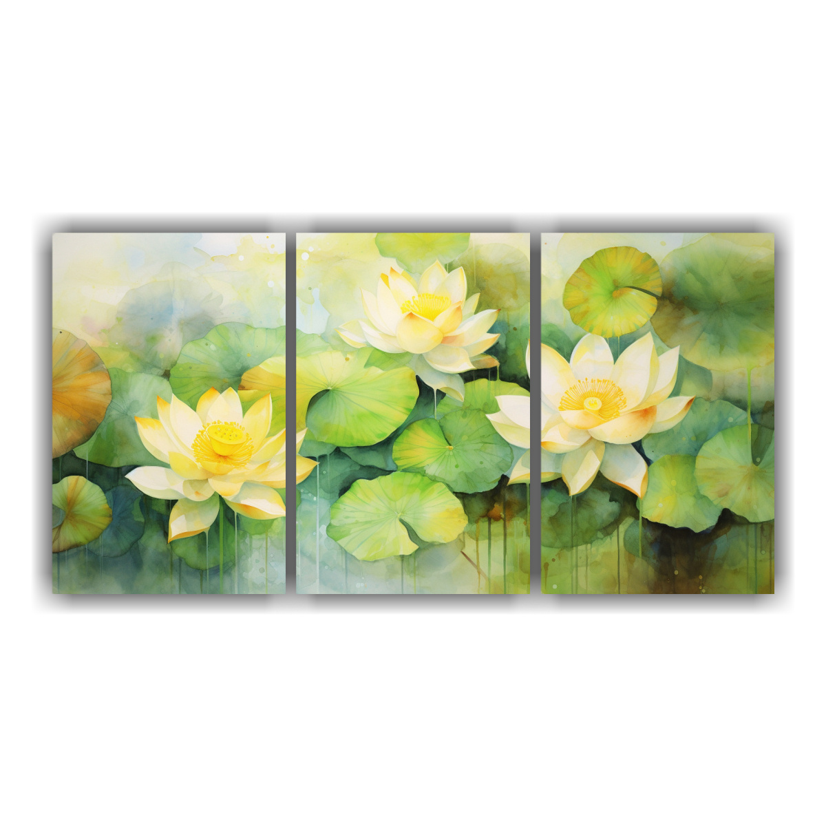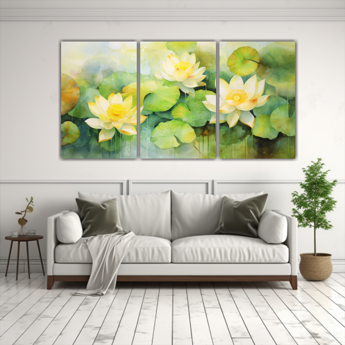 Pintura Abstracta De Flores De Loto Amarillas Y Verdes Para La Decoración De Paredes