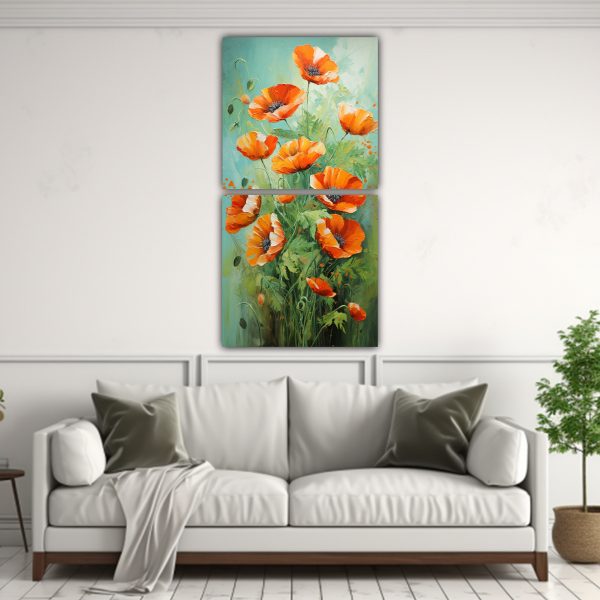 Pintura Abstracta De Flores En Verde Y Naranja Para Decorar El Baño