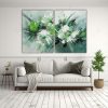 Pintura Abstracta De Flores En Verde Y Plata Sobre Lienzo En Decoración.