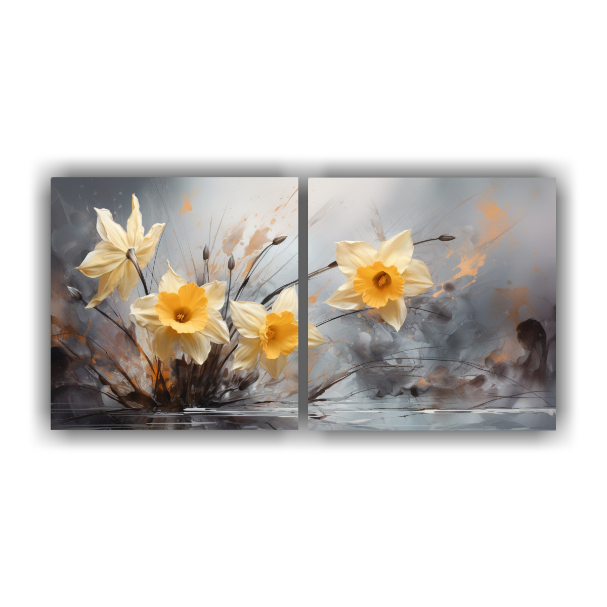 Pintura Abstracta De Flores Narcisos En Dorado Y Negro