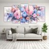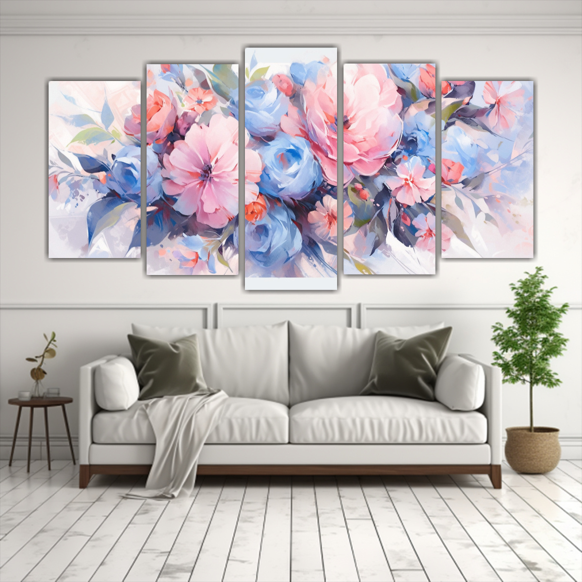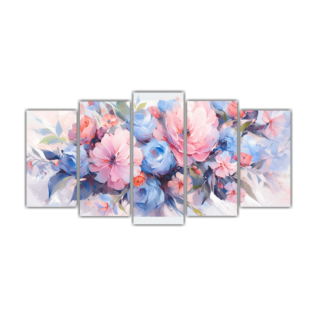 Pintura Abstracta De Flores Rosa Y Azul En Lienzo De Cinco Artes