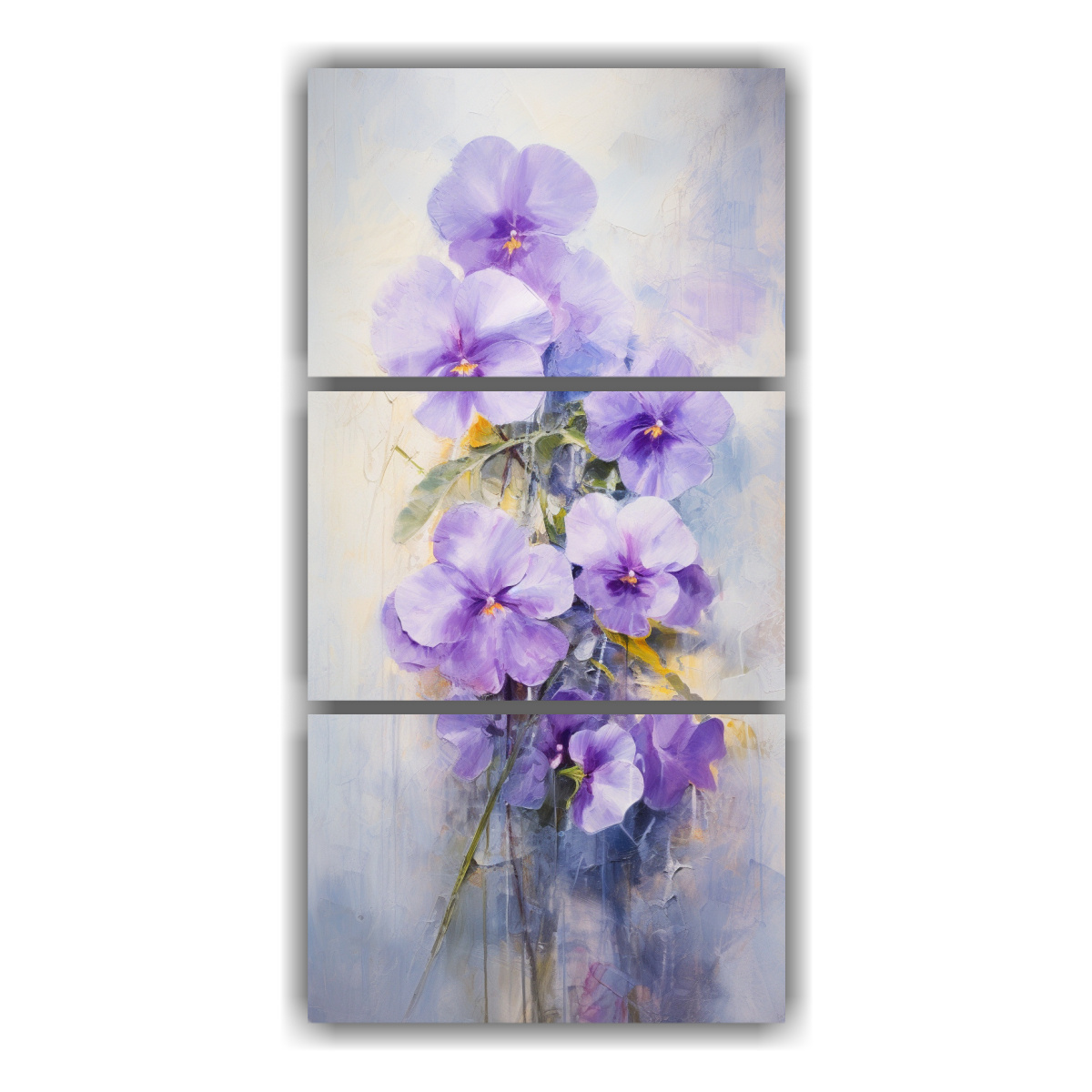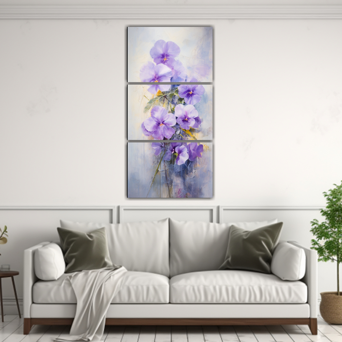 DecoCuadros ofrece cuadros decorativos de la mejor calidad y a precios económicos Set de 3 Canvas con pintura abstracta de flores violetas, perfecto para añadir un toque de elegancia a tu hogar Envíos express a regiones