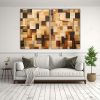 Para realzar la elegancia de tu sala de estar, coloca estos cuadros abstractos de fondo de azulejo de madera sobre un sofá gris claro Su combinación de colores dará un toque sofisticado y moderno a tu espacio