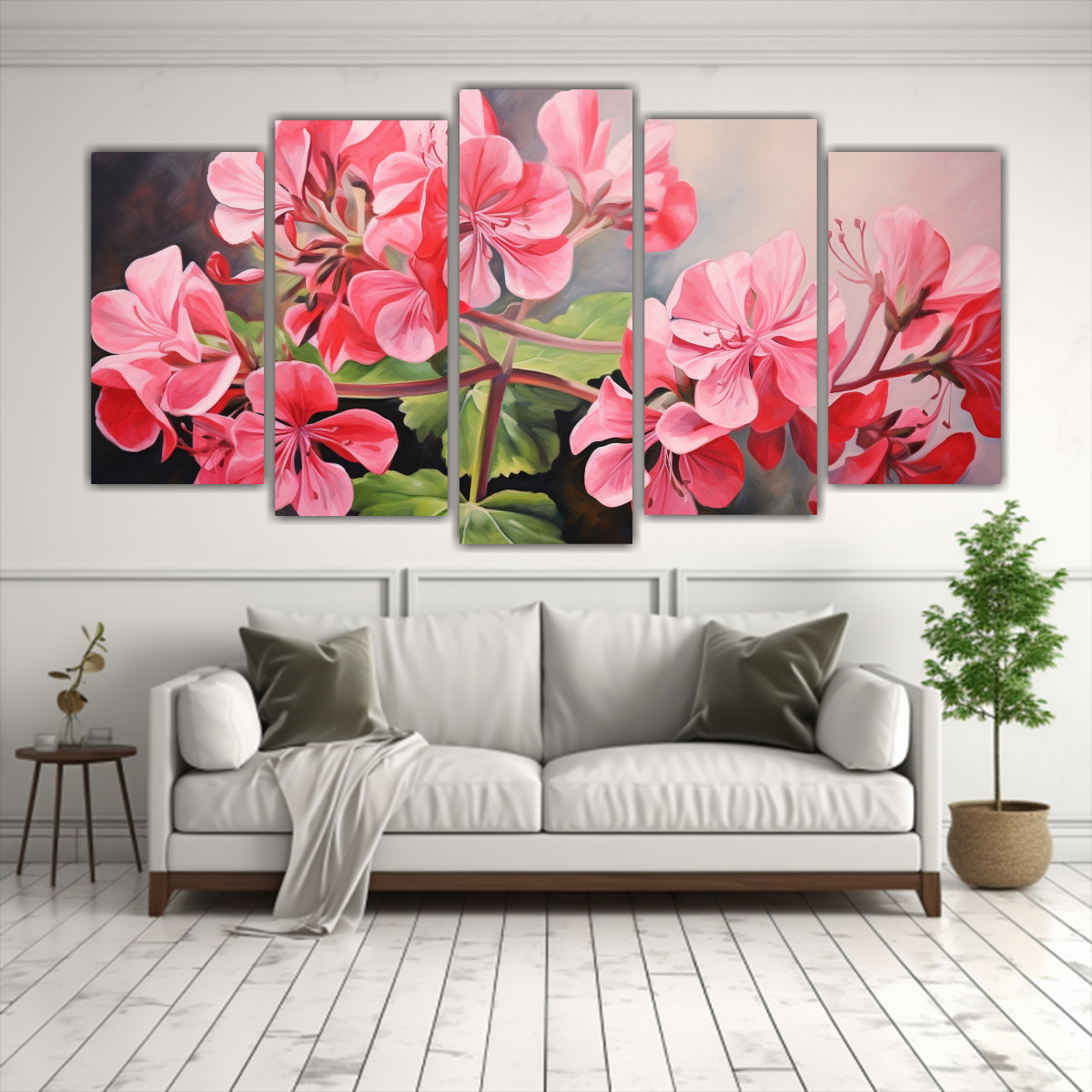 DecoCuadros ofrece el cuadro ‘Pintura abstracta de geranios en detalle fino’, una obra de arte que combina colores como Lila, Carmesí, Azul Marino grisáceo, Gris, Beige, Coral y Plateado Nuestros cuadros decorativos impresos en tela de alta calidad con bastidores de madera son perfectos para darle un toque de elegancia a tus espacios Además, garantizamos la mejor calidad del mercado y los precios más económicos Compra ahora y disfruta de una entrega rápida y gratuita en Santiago, y envíos express a regiones