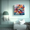 Coloca este cuadro en el salón de tu casa para crear un ambiente moderno y vibrante Combina los colores carmesí, turquesa y verde azulado con muebles blancos y accesorios plateados para resaltar la energía y el estilo artístico de la pintura abstracta de graffiti Sorprende a tus visitas con una decoración única y llena de personalidad