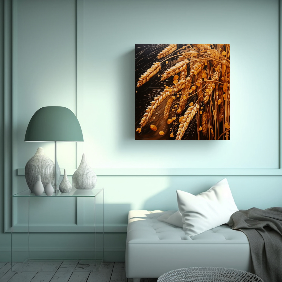 Este cuadro abstracto de granos de avena con intensidad espectacular en estilo Estilo óleo sería perfecto para agregar un toque de color y elegancia a una sala de estar moderna Puede colocarse sobre un sofá o una repisa, creando un punto focal en la habitación También se puede combinar con otros cuadros abstractos en tonos neutros para crear una composición armoniosa en la pared ¡Déjate llevar por tu creatividad y encuentra el lugar perfecto para este cuadro en tu hogar!
