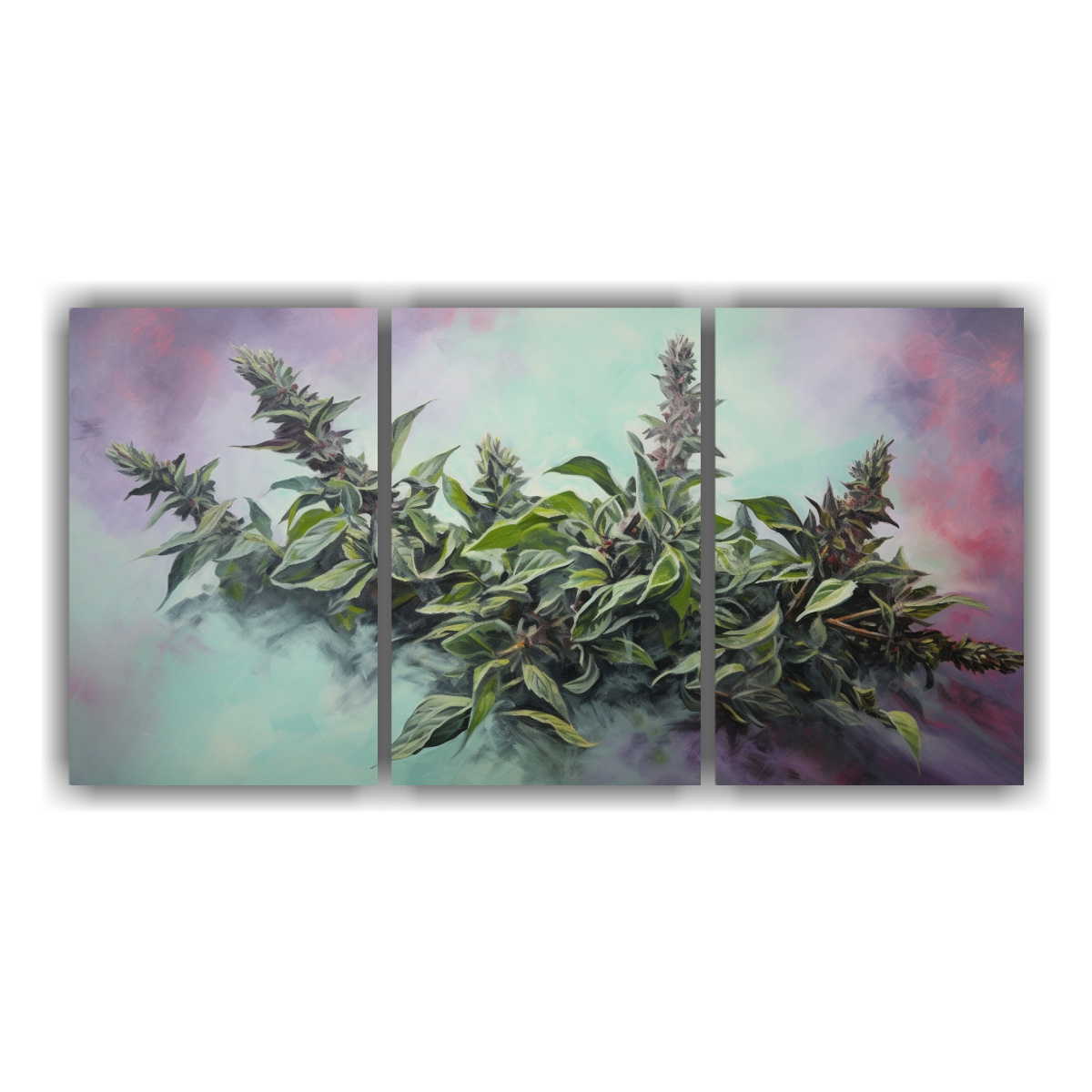 Pintura Abstracta De Hierbas De Salvia En Lienzo: Set De 3