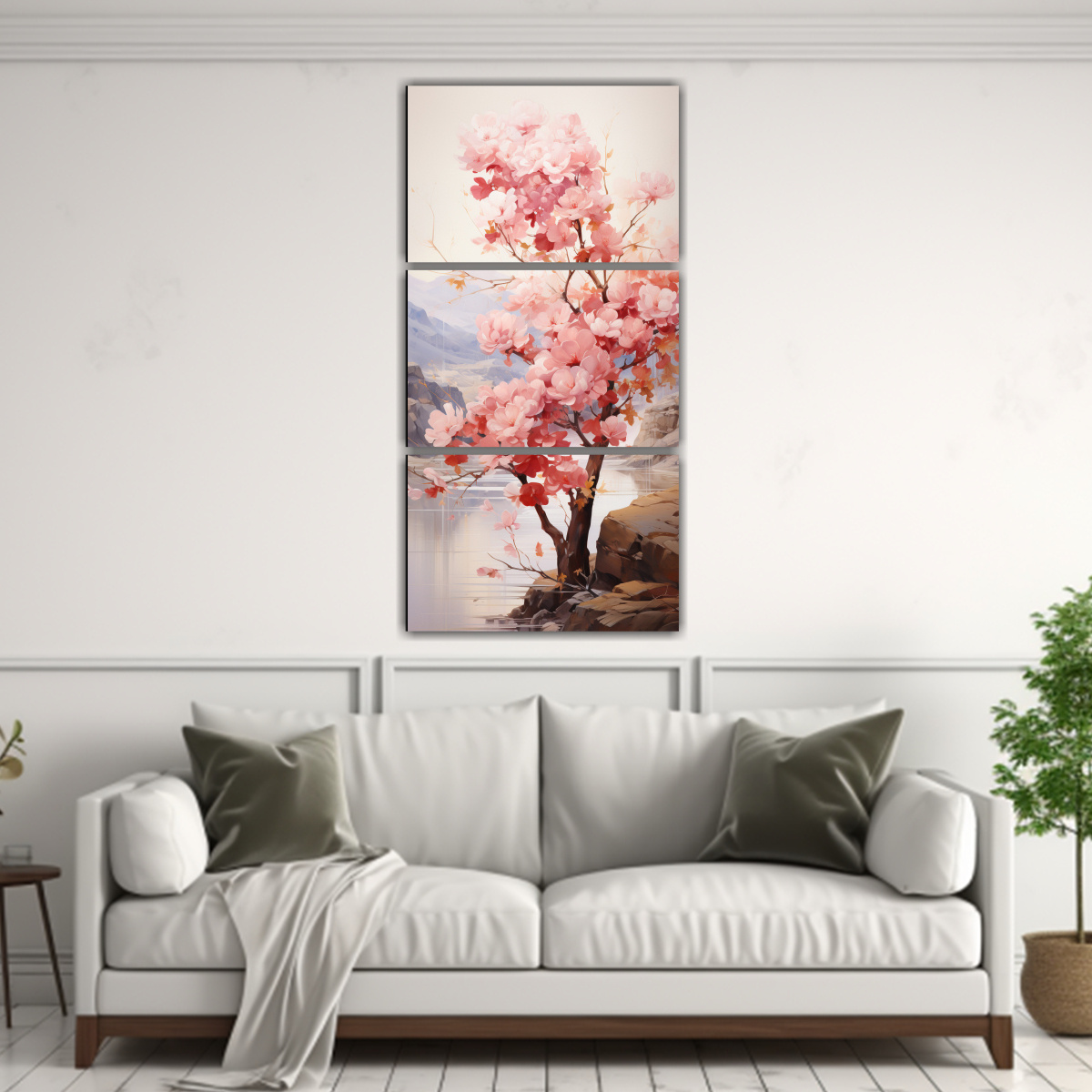 Pintura Abstracta De Higuera En Oro Y Rosa, Set De 3 Cuadros Decorativos