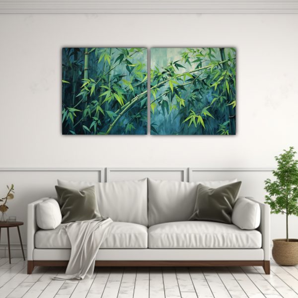 Agrega un toque de elegancia y frescura con este cuadro abstracto de hojas de bambú en lienzo resistente, ideal para salas, oficinas o dormitorios Envíos rápidos y gratuitos en Santiago, ¡no te lo pierdas!