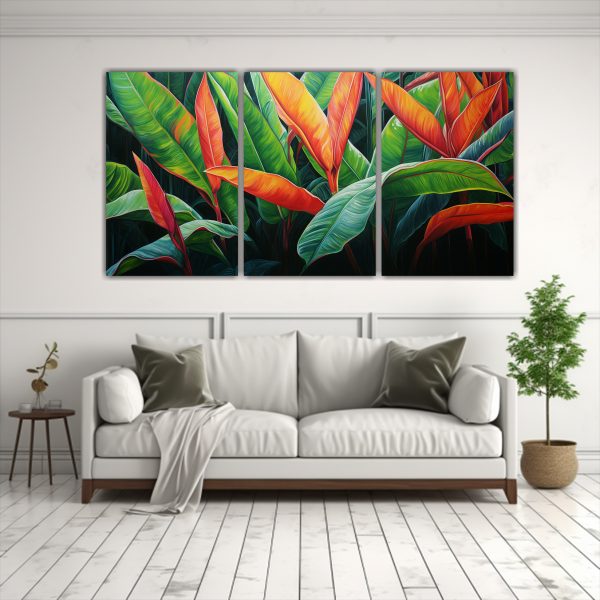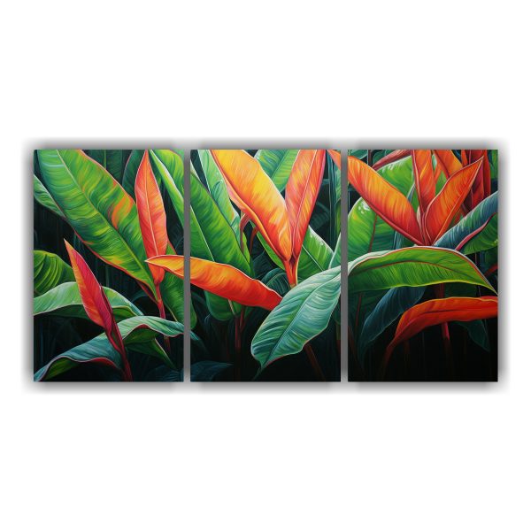 Descubre el Set 3 de Arte Forma Comedor A Heliconia Leaves, una pintura abstracta de hojas de heliconia en estilo Estilo óleo detallado Con entrega rápida y gratuita en Santiago Diseños exclusivos y calidad garantizada