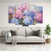 Pintura Abstracta De Hortensias En Detalle Alto En Bastidor De 5 Telas