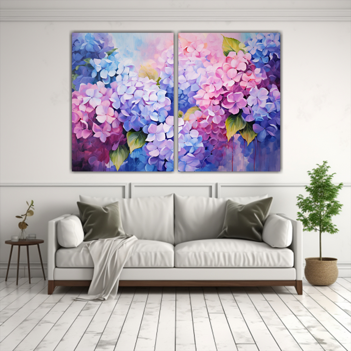 Para realzar la belleza de este cuadro, te recomendamos colocarlo en un espacio con tonos neutros para que los colores suaves de las hortensias resalten En un ambiente con muebles en beige, gris o blanco, este cuadro será el centro de atención
