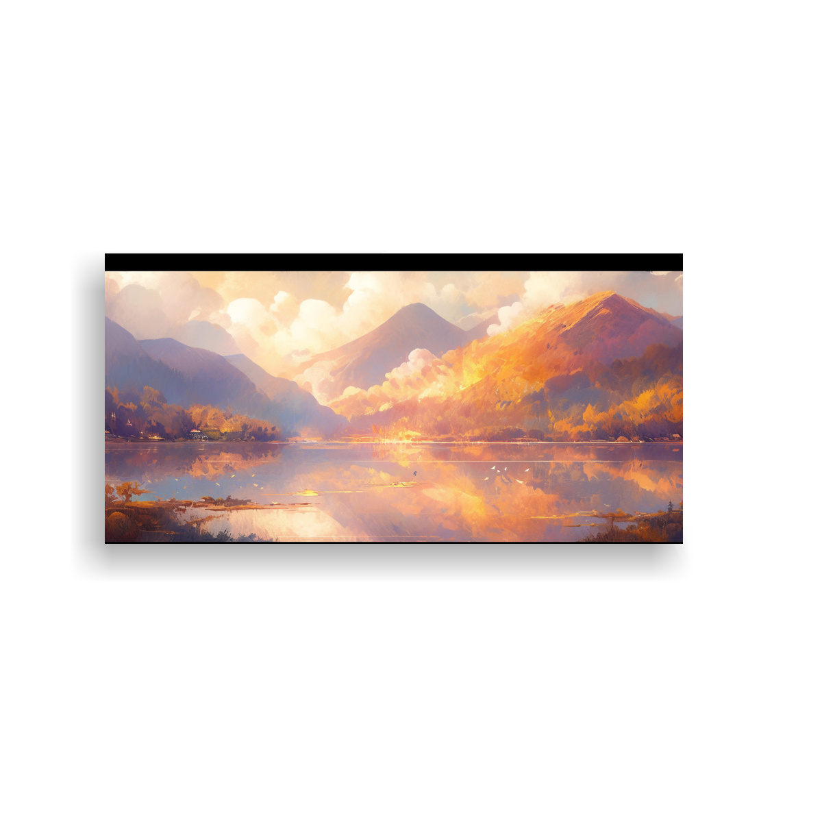 Pintura Abstracta De Intensidad A Lagos Y Montañas Con Colores Dorados