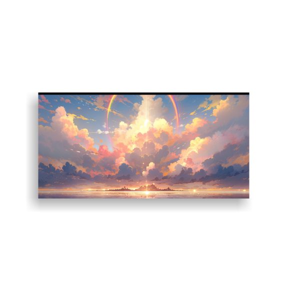 Renueva tu sala con esta hermosa representación de un amanecer lleno de colores vibrantes y elegantes Los tonos dorados y pastel se combinan a la perfección en esta pintura que se adapta a cualquier estilo decorativo Aprovecha la entrega rápida y gratuita en Santiago, con envíos express a regiones