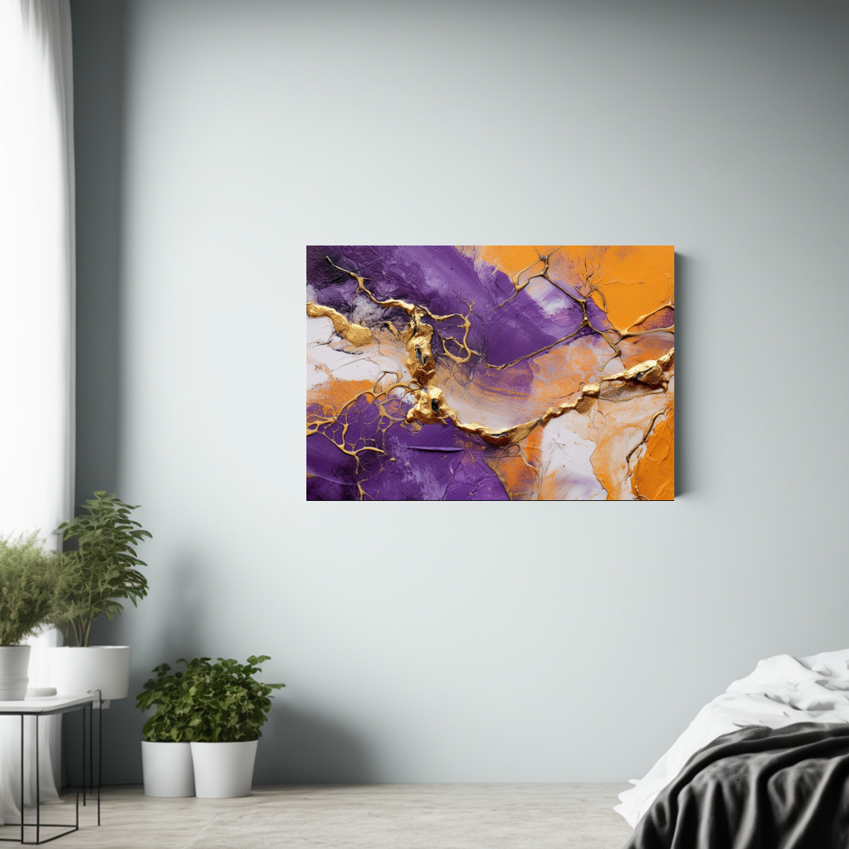 Renueva tu hogar con esta vibrante pintura abstracta que combina la fuerza de la Tierra y el dinamismo de la lava Colores como Coral, Plateado, Gris, Lila y Mostaza se fusionan en una composición única